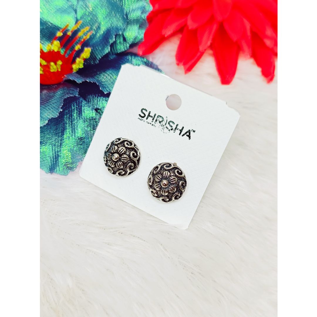 Ethinic Oxidised ear tops are earrings made of metal that has been purposefully oxidized to create a dark, black patina....