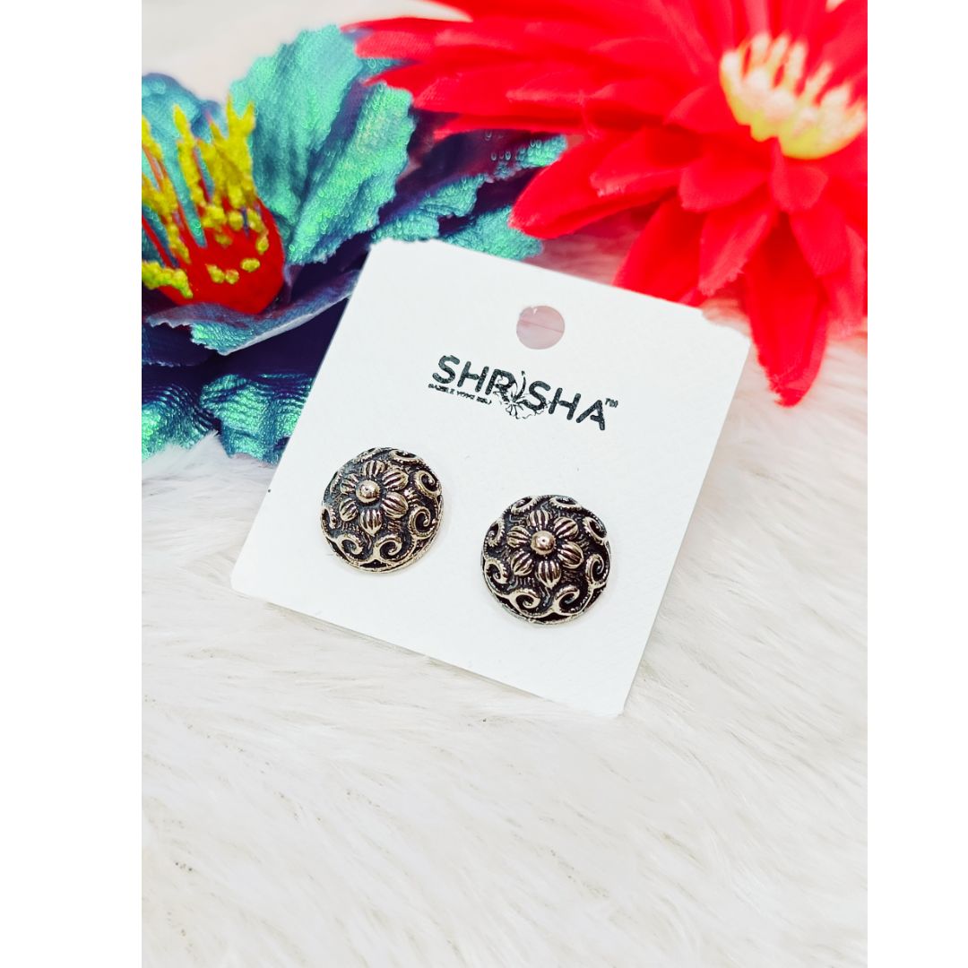 Tribal Oxidised Ear Tops are earrings made of metal that has been purposefully oxidized to create a dark, black patina....